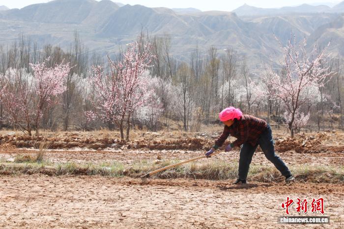 3月31日,青海化隆,农人正在田间耕作。化隆县素有“9直黄河化隆秀”的佳誉,黄河道经县域168千米,气象温存干润,每一年清朗节先后,成片杏花竞相开放,城家间1片生气盎然。中新社记者 马铭行 摄