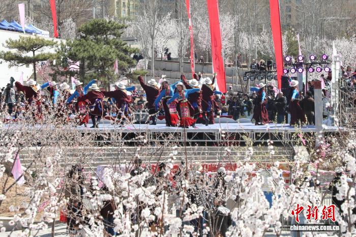 3月31日,青海化隆,优伶到场躲族跳舞上演。化隆县素有“9直黄河化隆秀”的佳誉,黄河道经县域168千米,气象温和干润,每一年明朗节先后,成片杏花竞相开放,城家间1片生气盎然。中新社记者 马铭行 摄