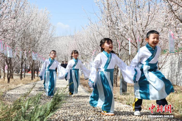 3月31日,青海化隆,小同伙正在杏花树停顽耍。化隆县素有“9直黄河化隆秀”的佳誉,黄河道经县域168千米,气象暖和干润,每一年光明节先后,成片杏花竞相开放,城家间1片生气盎然。中新社记者 马铭行 摄